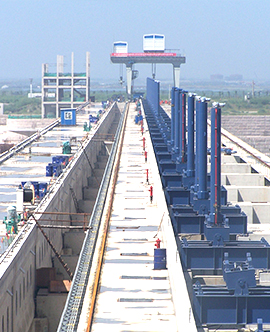公司專業(yè)生產(chǎn)的各類平面、弧型閘門,各類卷?yè)P(yáng)、門式、移動(dòng)式啟閉機(jī),各類清污機(jī)、攔污柵、升船機(jī)、壓力鋼管、錐形閥等超大型、大型水工金屬結(jié)構(gòu)件和各類起重機(jī)遠(yuǎn)銷全國(guó)26個(gè)省、市、自治區(qū),并出口到16個(gè)國(guó)家和地區(qū),廣泛應(yīng)用于全國(guó)重點(diǎn)工程建設(shè),如長(zhǎng)江三峽永久性船閘工程、淮河蚌埠閘擴(kuò)建工程、浙江溫州珊溪水利樞紐工程、四川岷江紫坪鋪水利樞紐工程、浙江省分水江水利樞紐工程、中國(guó)河口第一大閘曹娥江攔河大閘和港口、船舶制造企業(yè)等。